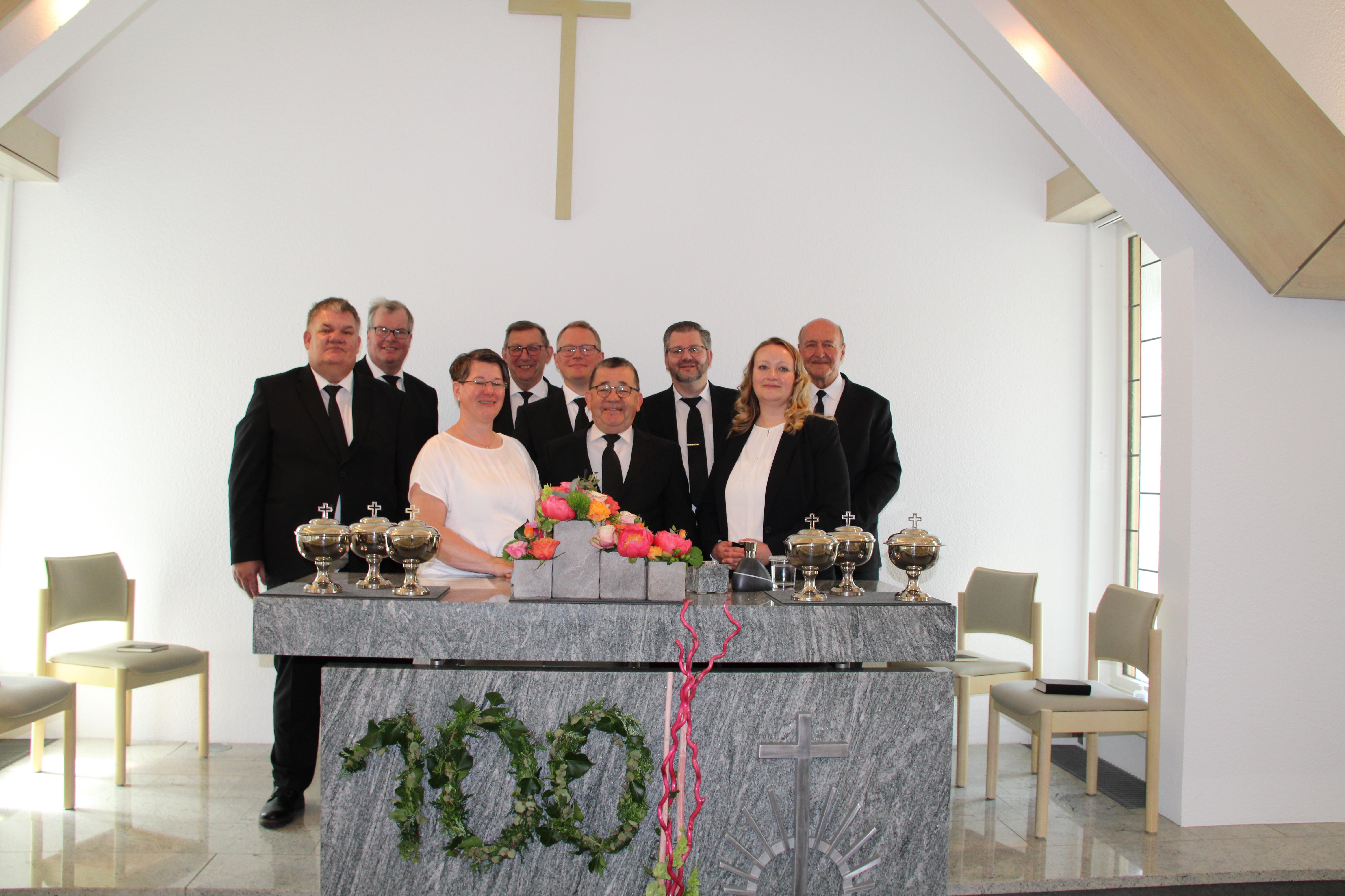 Nach den Predigbeiträgen des Bezirksältesten und des Vorstehers, konnte ein Kind die Gabe Heiligen Geistes in dem Sakrament der Heiligen Versiegelung empfangen. In der Feier des Heiligen Abendmahls für die Entschlafenen wurde insbesondere der vielen Seelen gedacht, die in 100 Jahren die Gemeinde gebaut und geprägt haben.